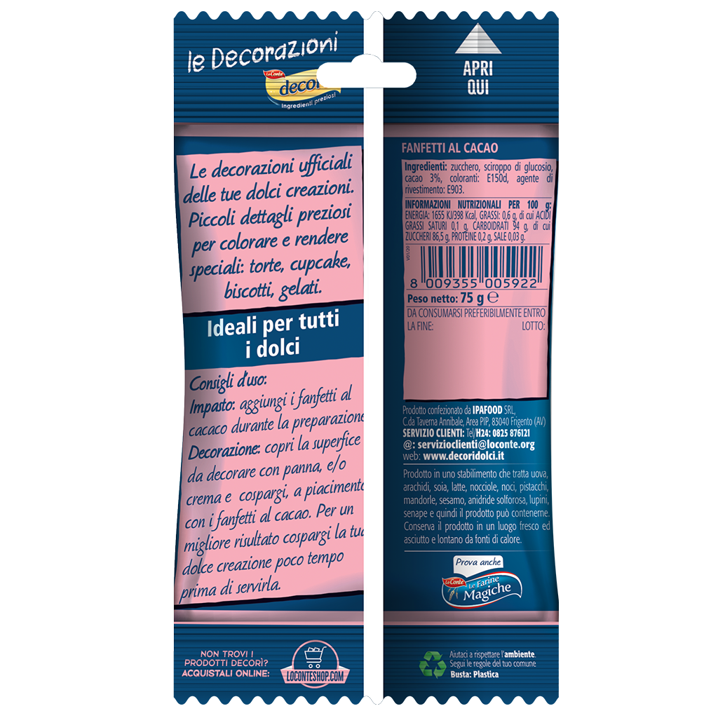 I fanfetti al cacao rientrano nell’ampia gamma di ingredienti e decorazioni in bustina.
