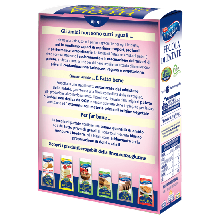 La fecola di patate è un ingrediente molto versatile che si ottiene grazie all’essiccazione e alla successiva macinazione delle patate. Il prodotto non deriva da OGM e nessun solvente viene impiegato pe la sua produzione ed è ottenuto da materie prime di origine vegetale.