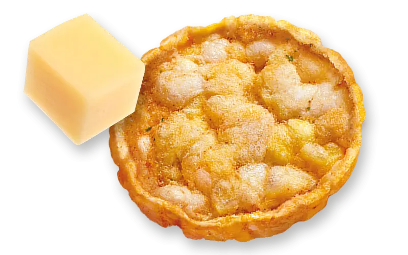 Ingredienti: Cereali 88% (mais, riso), oli vegetali (olio di girasole alto oleico, olio di oliva), condimento aromatizzato al formaggio (siero di latte in polvere, lattosio, sale, aroma naturale (contiene latte), formaggio in polvere (latte) 0,3%), emulsionanti: lecitine (soia).